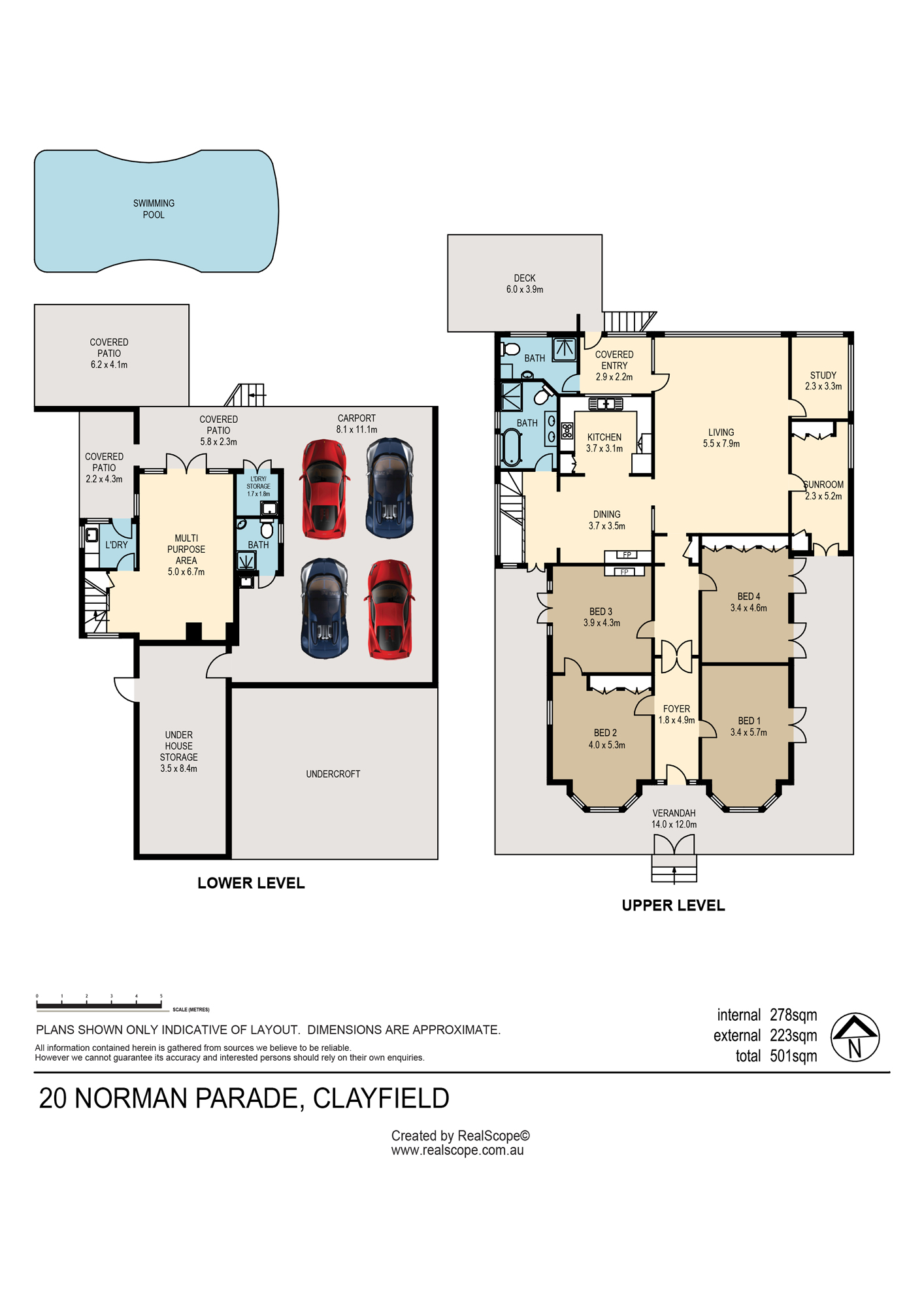 • Undercover parking for four vehicles plus additional off-street space